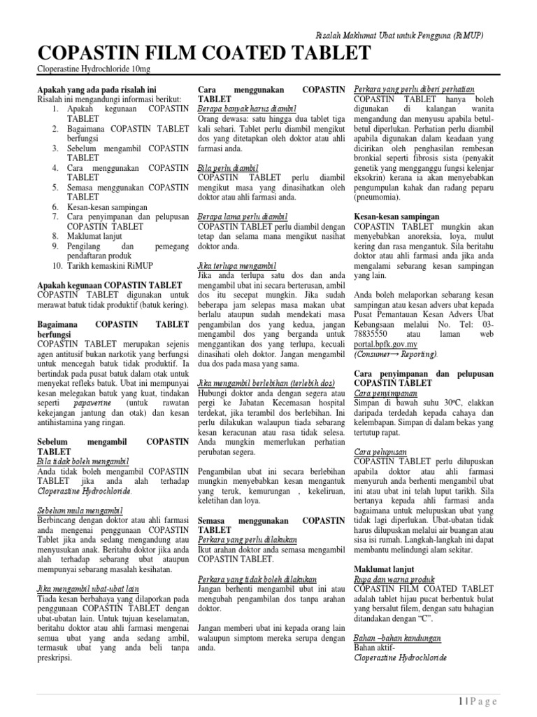 Asias one-stop resource for medical news clinical reference and education. Copastin Cloperastine Hcl Kegunaan Langkah Berjaga Jaga Kesan Sampingan Interaksi Penggunaan Dosnya Ceriasihat. Untuk kanak-kanak 2 tahun hingga orang dewasa bagaimana kita tentukan ubat batuk apa yg sesuai.